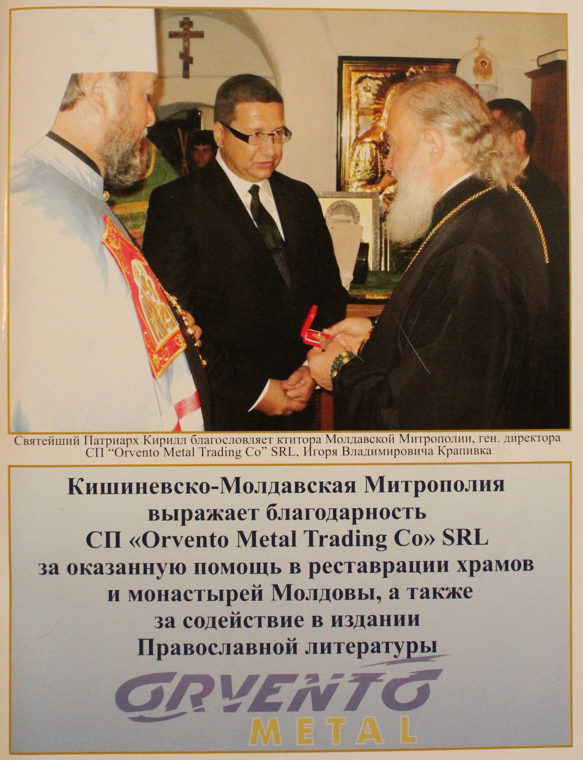 ÎM «Orvento-Metall Trading Co» SRL участвовала в тотальной реконструкции и реставрации Церкви «Святого Великомученика Дмитрия» монастырского комплекса «Nasterea Maicii Domnului» в с. Курки, Оргеевского района, расположенного примерно в 55 км от Кишинева, вблизи речки Ватич, на склонах живописного холма, покрытого дубовым лесом.