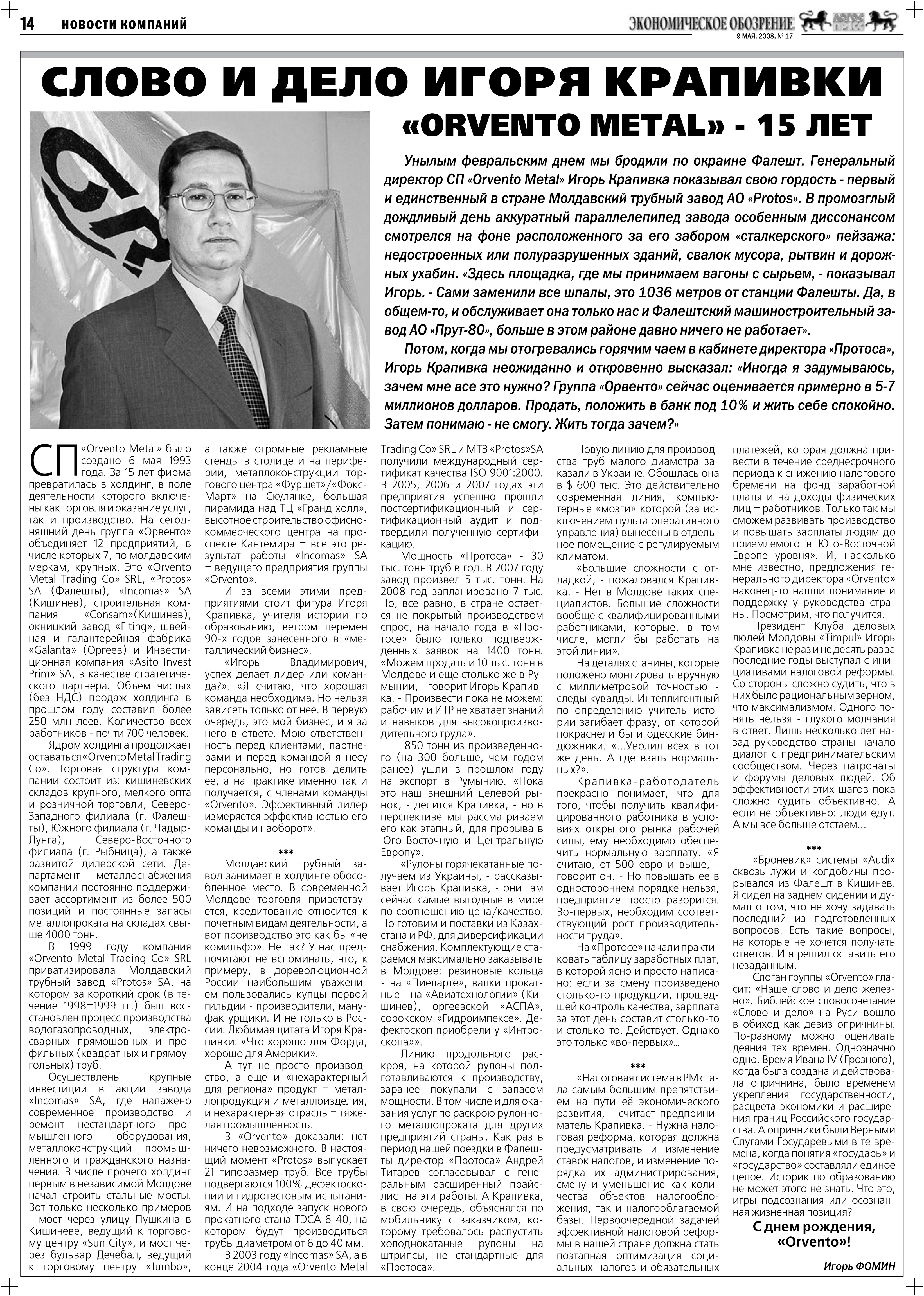 Экономическое обозрение "Логос-пресс" № 17 от 09 мая 2008  "Слово и дело Игоря Крапивки "Orvento Metal" - 15 лет"