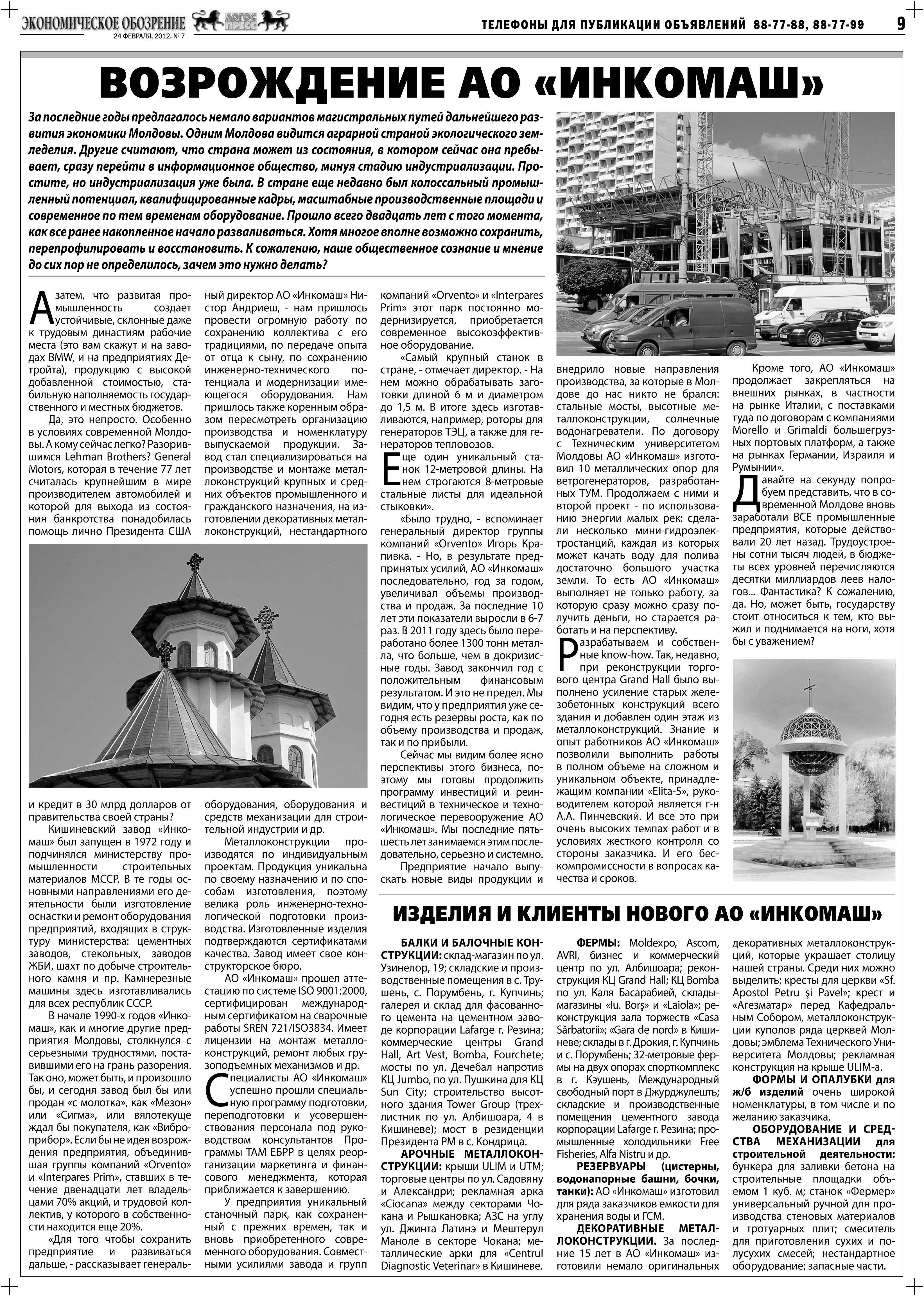 Экономическое обозрение "Логос-пресс" №7 от 24 февраля 2012 года "Возрождение АО "Инкомаш""